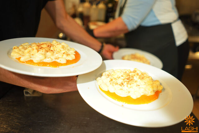 L’ambiente é esclusivo e raffinato. In estate si cena sulla terrazza che affaccia sui tre laghi, con accompagnamento musicale studiato con cura per assicurare agli ospiti una serata divertente e indimenticabile